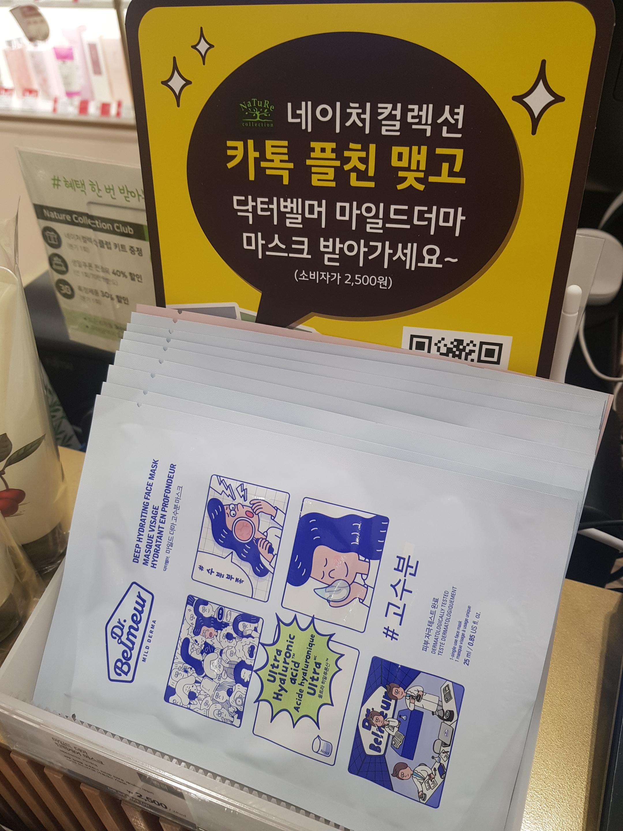 손이 너무 건조해서 지나가는 길에 핸드크림을 사러 잠시 들어갔다.핸드크림만 사고 결재를 하려는데 카톡플친만 맺어도 마스크팩을 준다는 문구를 보고 플친을 맺었다..한개에 2,500원이나 하는 마스크팩을 플친을 맺으면 준다고 하니 돈 번 느낌이 들었다.