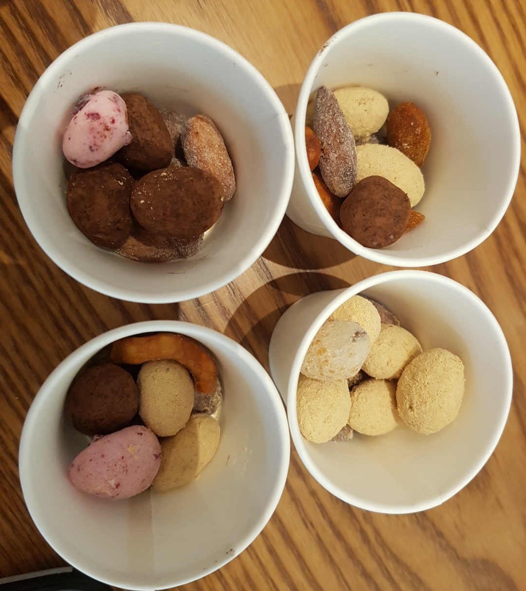 아몬드위주이긴 하나 종류가 어마어마했다.아몬드겉에 맛이 다르니 골라먹는 재미가 가득한 아몬드였는데 오늘은 맘껏 시식까지 할 수 있는 행사라 친구들 모두 종이컵에 먹고 싶은 아몬드를 담아왔더니 시식만 한봉지 양이 된 듯 했다.먹어도 먹어도 질리지 않고 더 맛있는 맛인것 같아 한아름 담아 왔다.당분간 내 간식 친구는 허니버터아몬드프렌즈이다
