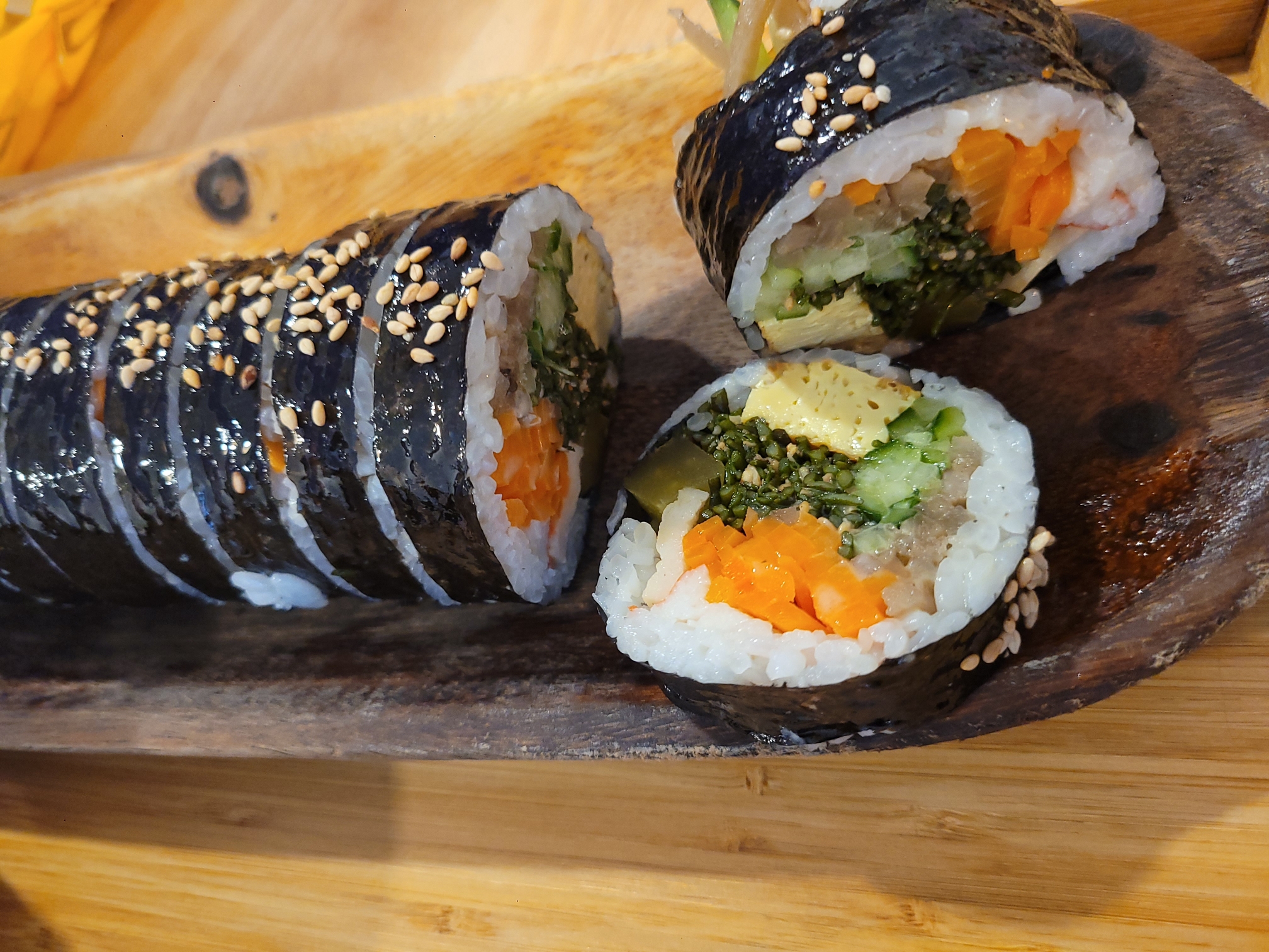 톳이라는 것을 넣으니 식감이 남달랐다..그리고 톳의 맛이 아주 강할 줄 알았는데 전혀 그렇지가 않고 다른 야채들과의 조화도 너무 좋았다.오독오독 씹는 식감을 좋아하는 나에게 아~주 좋은 김밥이었다.톳김밥의 매력이 이리 깊을 줄이야~매력쩐다.ㅎ